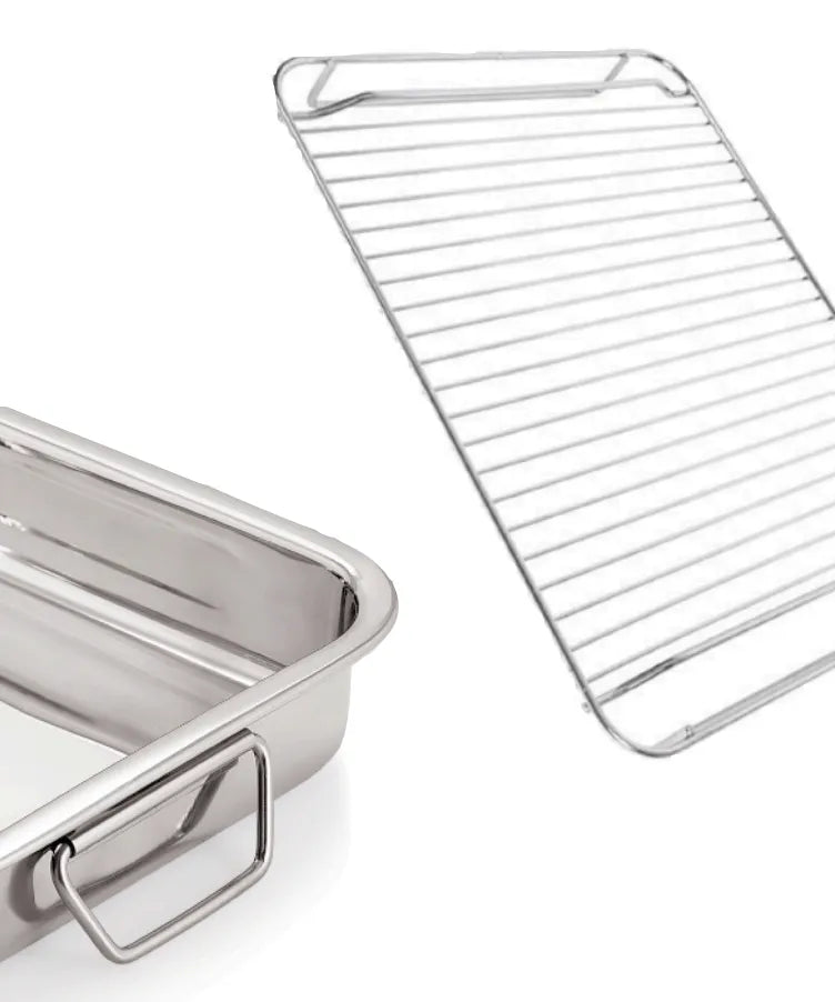 Rustidera BASIC marki ALZA o średnicy 35 cm posiada te same cechy co model o średnicy 30 cm, oferując większą pojemność do przygotowywania obfitych posiłków. Wykonana ze stali nierdzewnej, z wyjmowaną kratką wewnętrzną i składanymi uchwytami. Nadaje się do piekarnika i zmywarki.