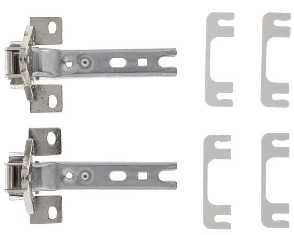 Zestaw 3 zawiasów drzwi lodówki oraz 6 podkładek do montażu (niektóre zestawy mogą zawierać 2 zawiasy). Średnica zawiasu 30 mm, kompatybilny z otworami o średnicy 30 mm, 35 mm oraz 42 mm. Wymiary podkładek: 3 x 0,8 mm oraz 3 x 1,5 mm. Pozycja zawiasu: lewa lub prawa.
