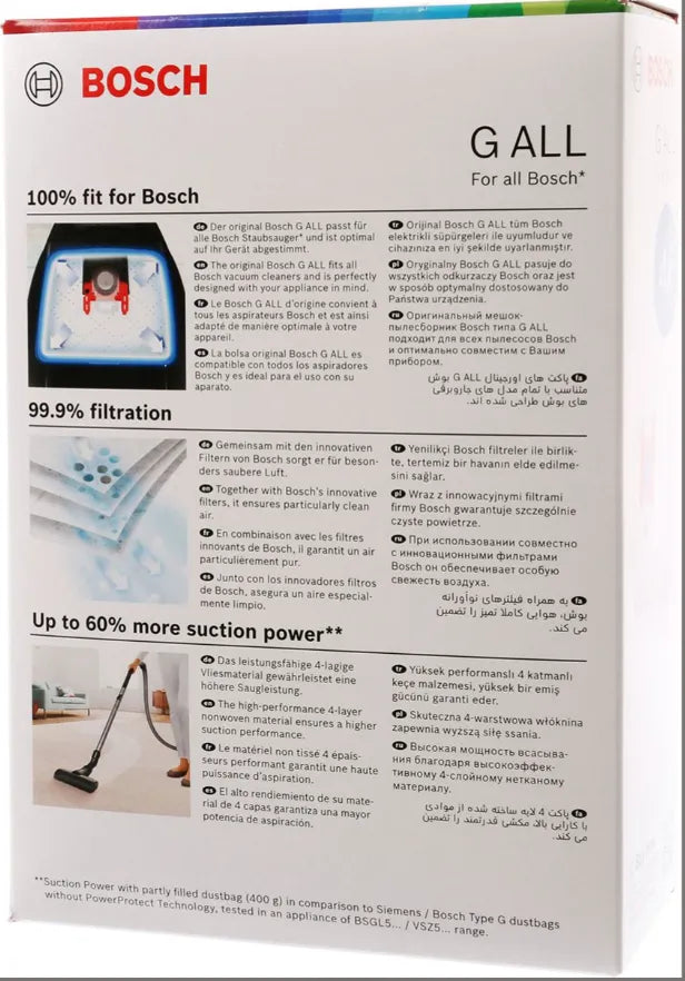 Worki do odkurzacza Bosch typu G z mikro-higienicznym filtrem. Opakowanie 4 sztuki.