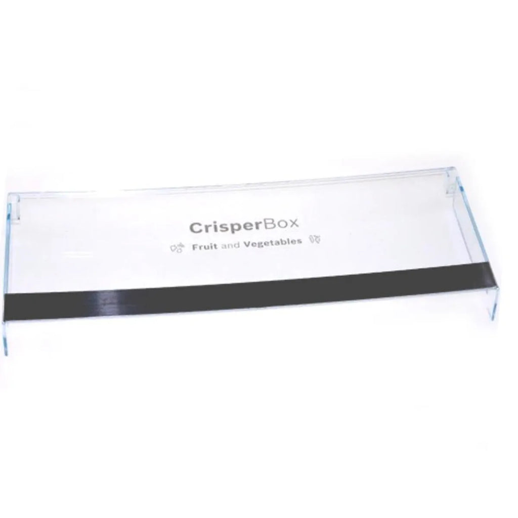 Ozdobna pokrywa do szuflady na warzywa w lodówce Bosch. Oryginalna część zamienna do urządzeń kuchennych. Ta część jest umieszczana na przedniej części szuflady na warzywa, zwanej również CrisperBox.