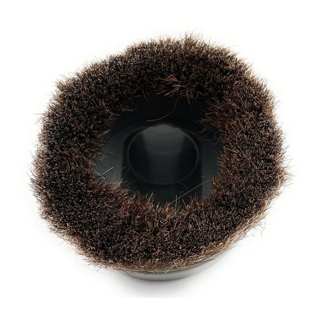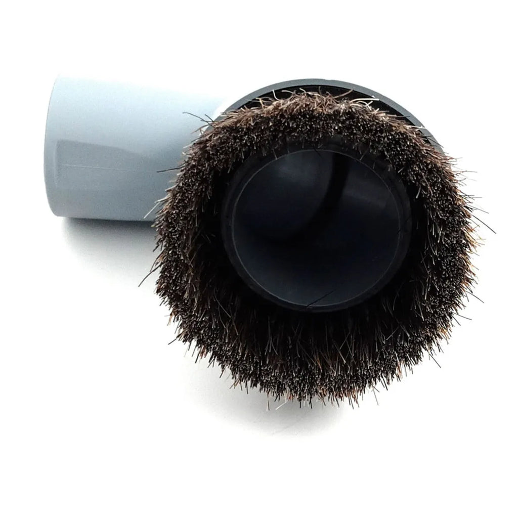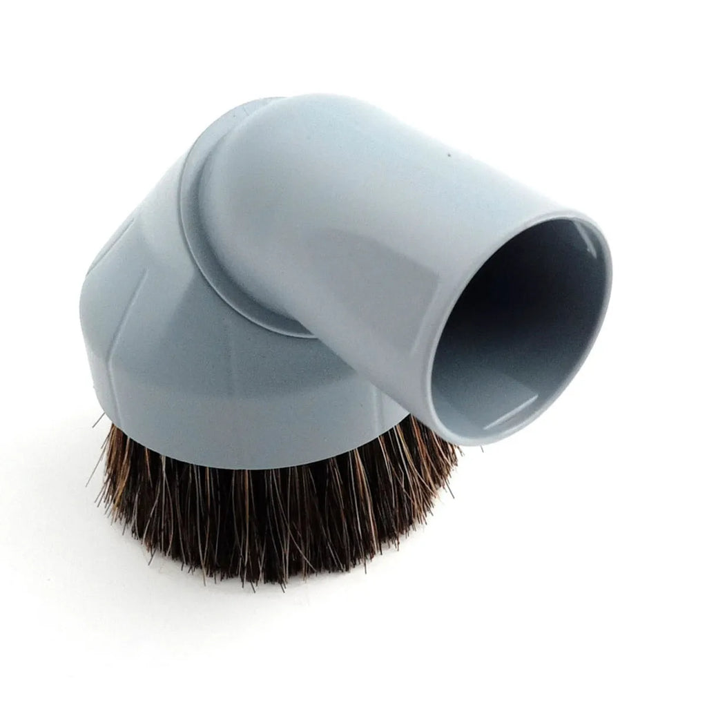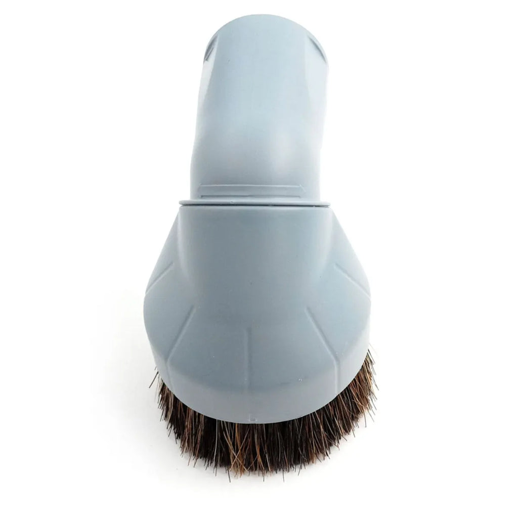 Akcesorium szczotki do odkurzacza Nilfisk. Zamienna część do urządzenia do sprzątania. Końcówka do czyszczenia mebli. Szary okrągły szczotka.