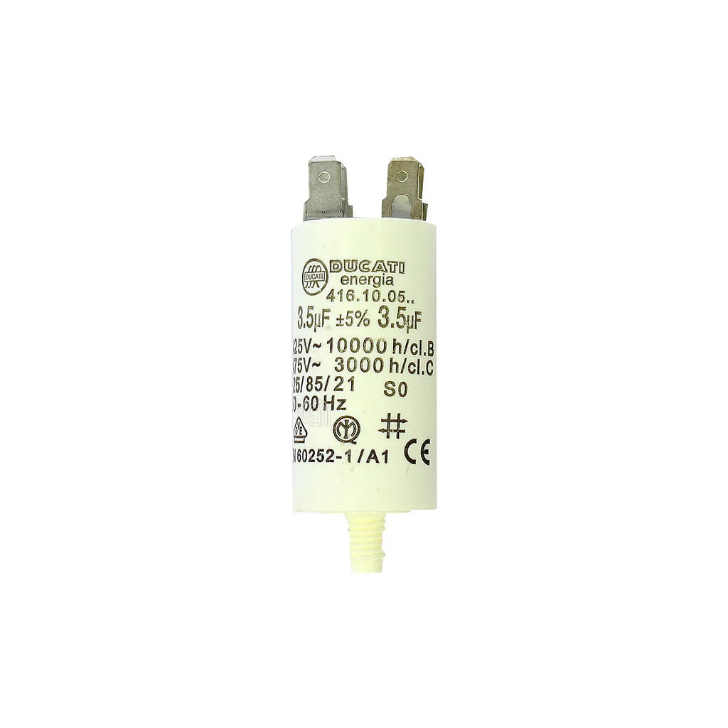 Uniwersalny kondensator rozruchowy o pojemności 3,5 mikrofarada (µF) marki **UNIVERSALE**, zaprojektowany w celu optymalizacji pracy silników w pralkach i innych urządzeniach gospodarstwa domowego. Ten element jest niezbędny do zapewnienia momentu rozruchowego silnika, gwarantując efektywny cykl prania. Jest to zamiennik typu **OEM/Adaptowalny**, spełniający normy jakości dla niezawodnej wymiany.