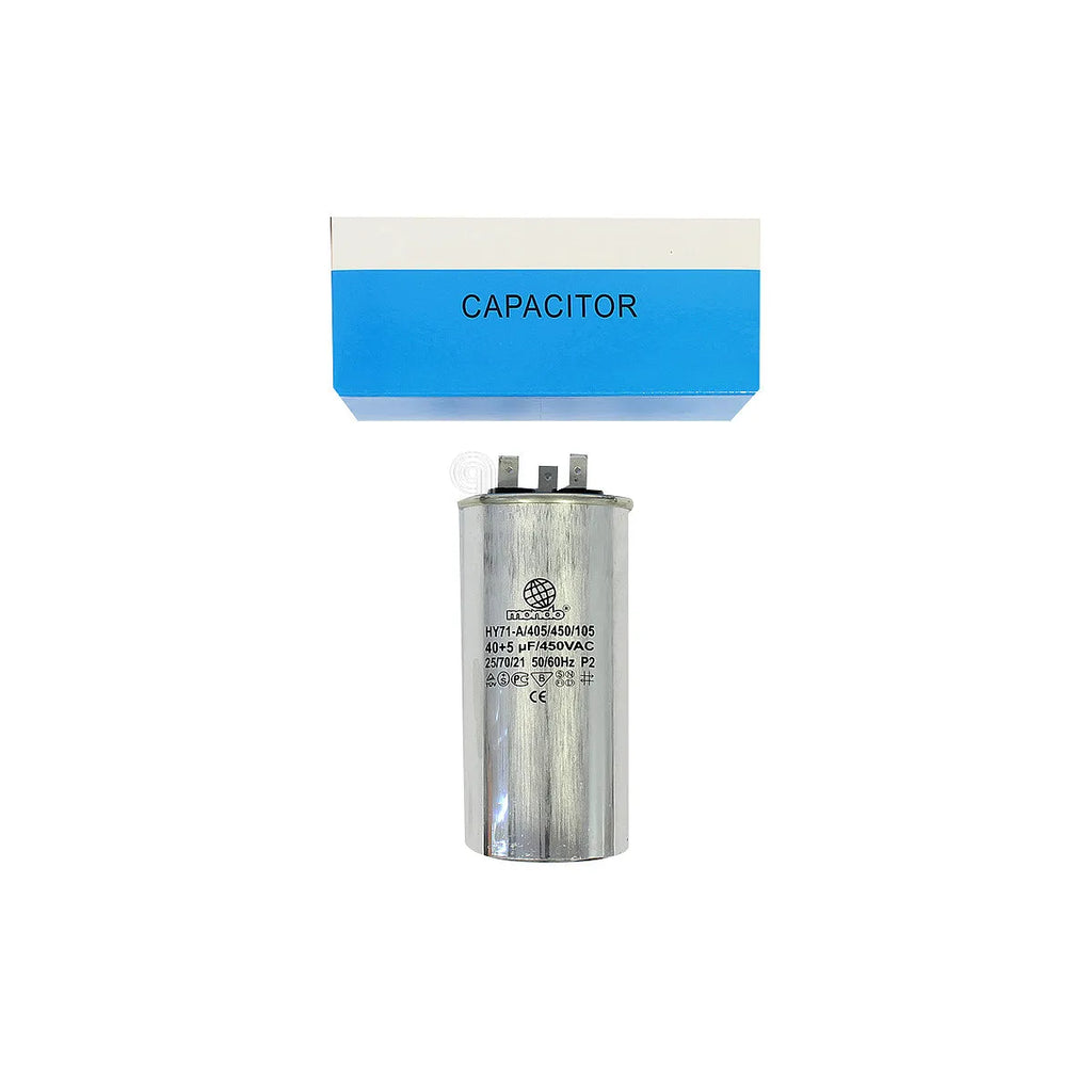 Ten kondensator jest uniwersalnym zamiennikiem kompatybilnym z wieloma modelami lodówek, chłodziarek i innych urządzeń gospodarstwa domowego, które wykorzystują podwójny kondensator 40µF i 5µF przy 450V. Jest powszechnie stosowany w systemach klimatyzacji i chłodzenia.