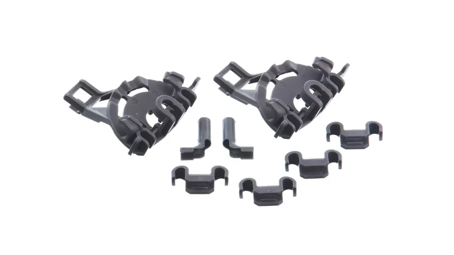 Zestaw dwóch łożysk i czterech wsporników do dolnych prętów kosza zmywarki Bosch, Siemens, Balay. Oryginalna część zamienna do urządzenia kuchennego.