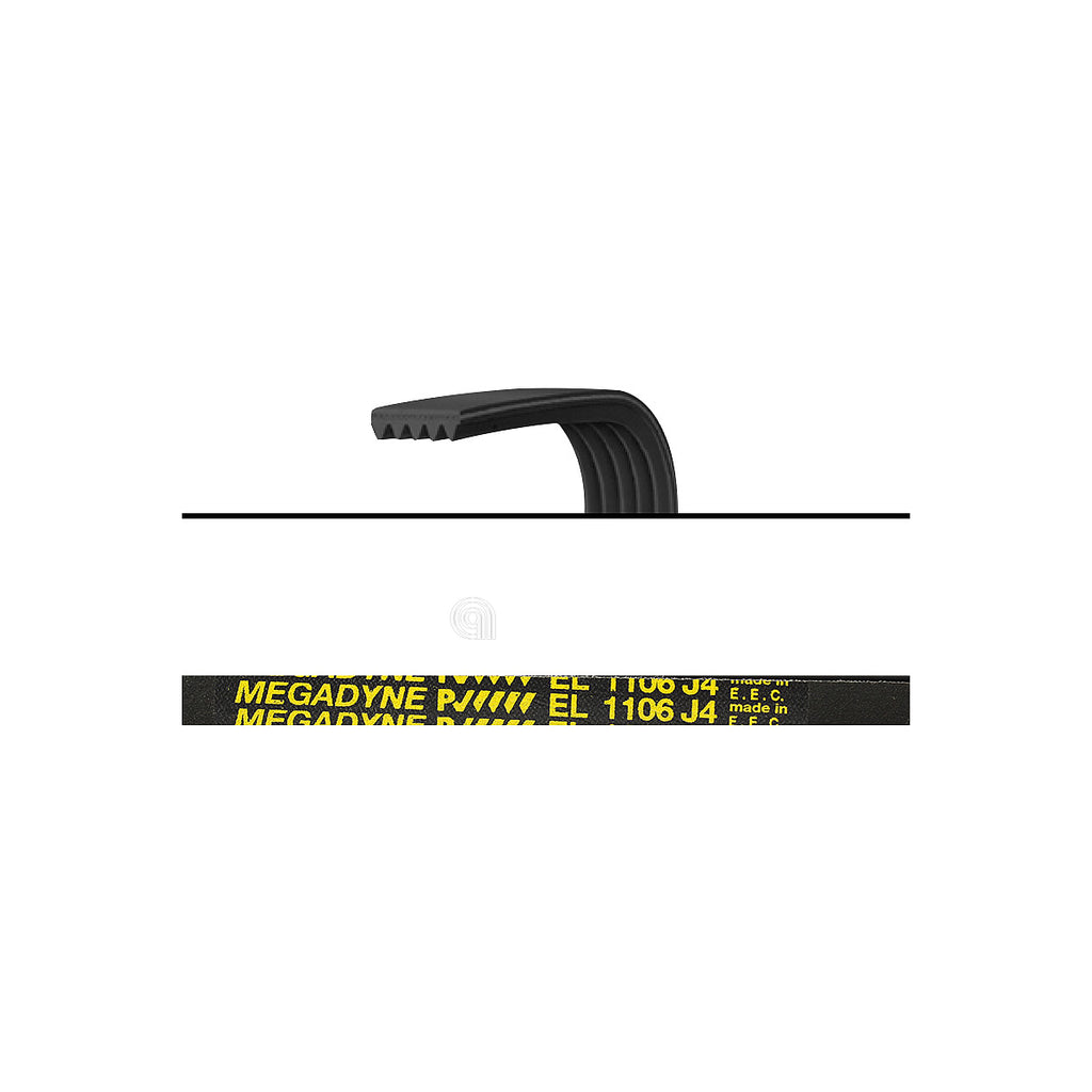 Oryginalny pasek Poly-V J4 1106 EL do pralek, zaprojektowany do przenoszenia ruchu silnika na bęben, zapewniając optymalne działanie urządzenia.