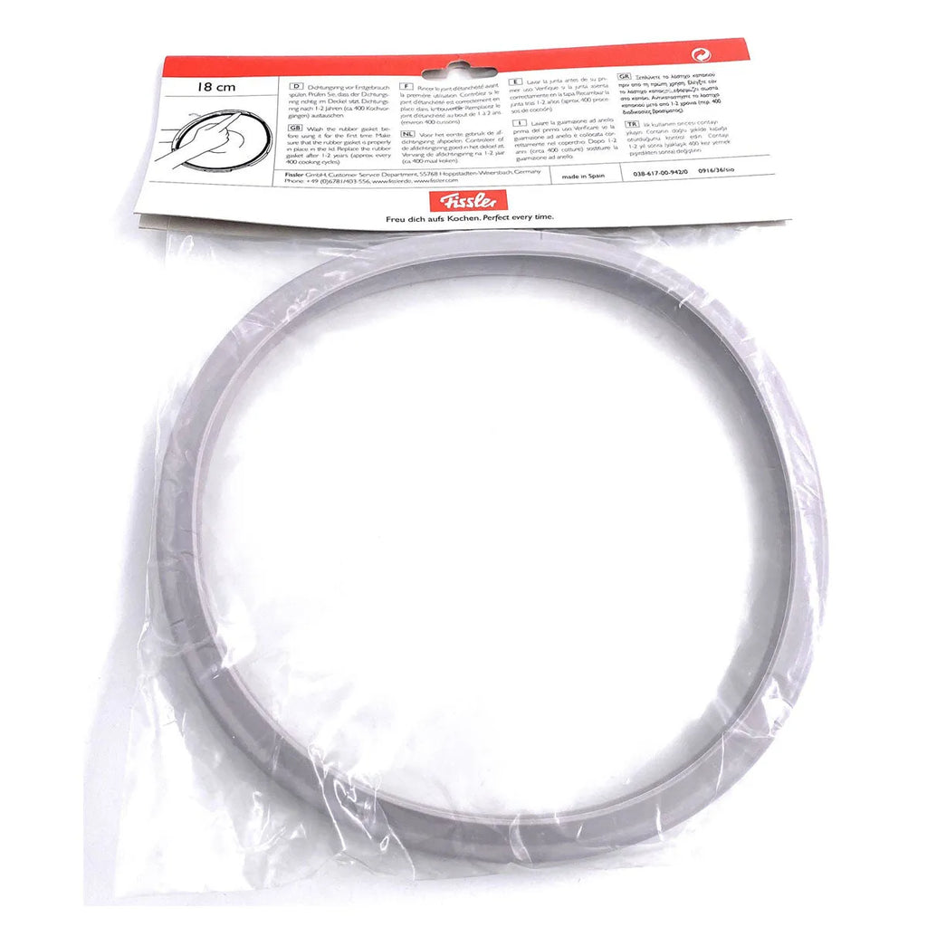 Uszczelka zamienna do szybkowaru Fissler, średnica 18 cm. Modele klasyczne. Zużycie uszczelki powoduje przeciekanie po boku pokrywki szybkowaru, wymień uszczelkę, gdy pojawią się takie wycieki.
