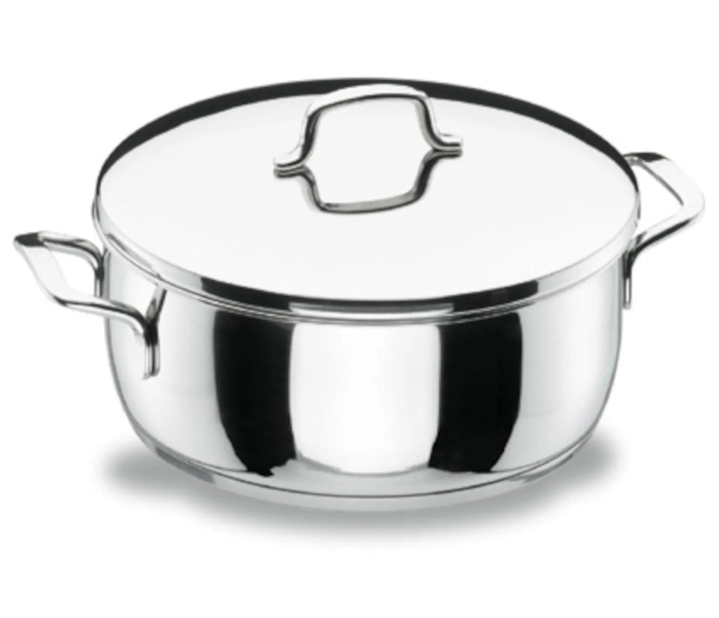 Całość naczynia (korpus, uchwyty i rączki) wykonana ze stali nierdzewnej 18/10.