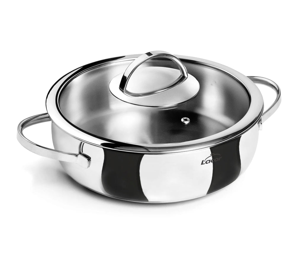 Cały element (korpus i uchwyty) wykonany ze stali nierdzewnej 18/10.