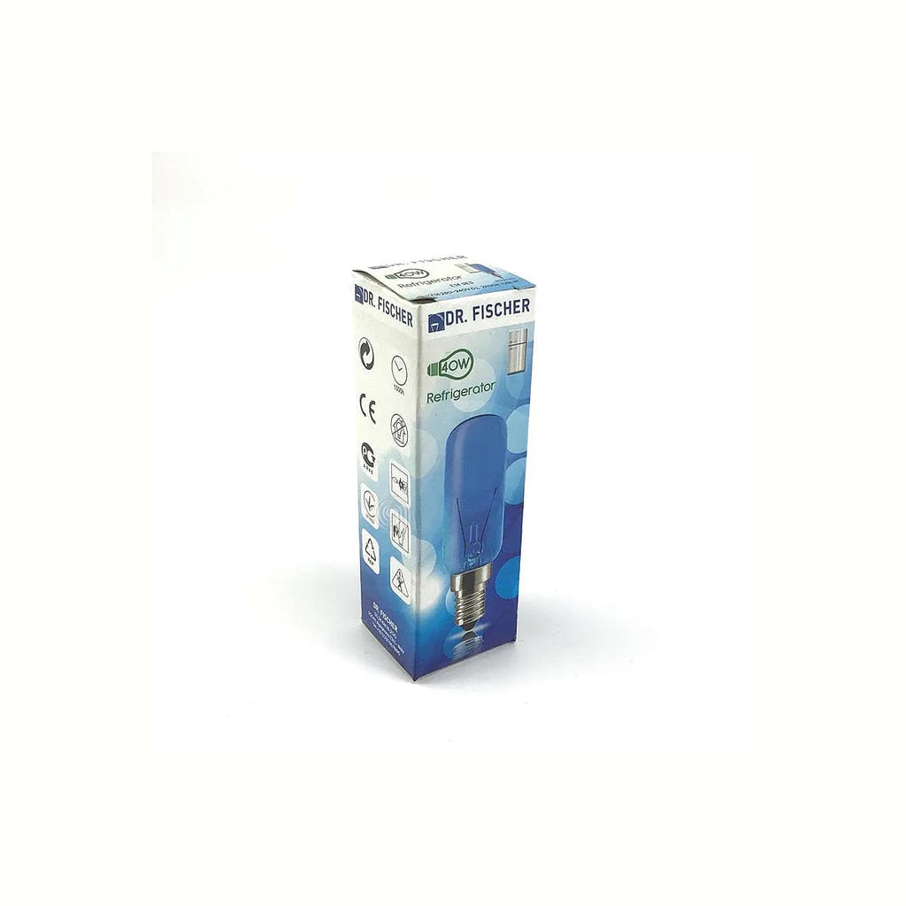 DR. FISCHER oferuje tę wysokiej jakości niebieską lampę rurkową, model 55304075, zaprojektowaną specjalnie do lodówek i zamrażarek. Ta uniwersalna lampa o mocy 40W i napięciu 230-240V AC zapewnia charakterystyczne oświetlenie wewnątrz urządzenia. Idealna do wymiany istniejących żarówek lub dla tych, którzy szukają kolorowego akcentu. Jej solidna konstrukcja i gwint E14 SES (średnica 14 mm) czynią ją kompatybilną z szeroką gamą modeli lodówek, w tym marek takich jak SAMSUNG, SIEMENS i UNIVERSALE, a także innych, które używają lampy E14 40W o wysokości około 86 mm. Wyprodukowana we Włoszech, ta lampa posiada 2 wbudowane bezpieczniki i spełnia międzynarodowe normy (IEC) oraz BS5971 dotyczące bezpieczeństwa, gwarantując średni czas pracy 1000 godzin oraz klasę energetyczną G.