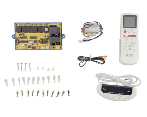 Ten uniwersalny moduł elektroniczny, model DCE111A, jest przeznaczony do sterowania urządzeniami klimatyzacyjnymi typu włącz/wyłącz. Zapewnia kompleksowe rozwiązanie do zarządzania systemem, w tym funkcje automatycznego uruchamiania, sterowania sprężarką, wentylatorem wewnętrznym o trzech prędkościach, wentylatorem zewnętrznym oraz zaworem czterodrogowym.
