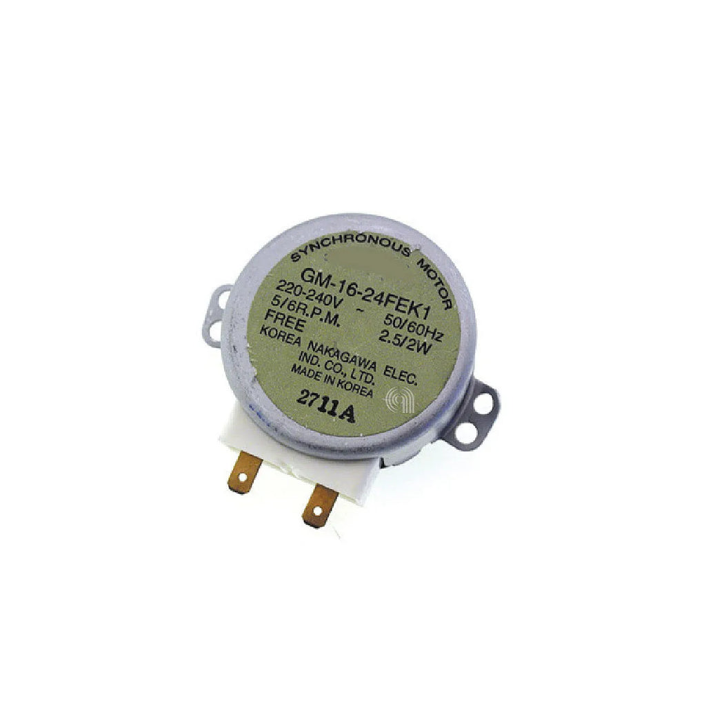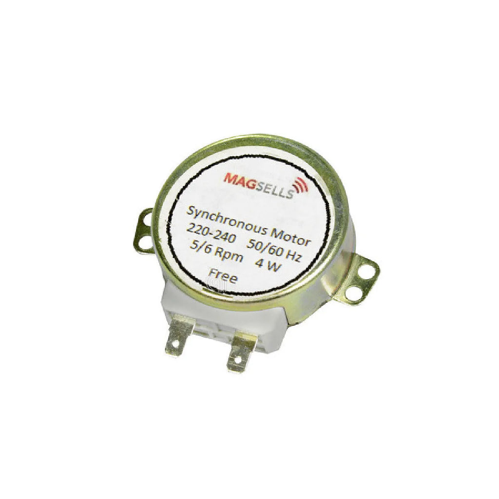 Uniwersalny silnik talerza obrotowego, typ Adaptowalny, przeznaczony do kuchenek mikrofalowych. Ten wysokiej jakości silnik synchroniczny zapewnia niezawodną i trwałą pracę. Jego dane techniczne obejmują wysokość wału 13/15 mm, moc 4 waty, napięcie 220/240 woltów oraz prędkość 5/6 obr./min. Przekrój wału to typ D o wymiarach 6x7 mm, a wyposażony jest w końcówki Faston 4,8 mm, co ułatwia montaż i zapewnia kompatybilność z szeroką gamą modeli. Idealny do wymiany uszkodzonych silników i przywrócenia funkcjonalności mikrofalówki.