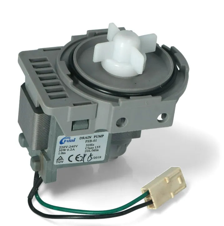 Część zamienna do naprawy urządzenia do prania. Gdy urządzenie nie może odprowadzić wody, czasami usterkę naprawia się przez wymianę pompy.