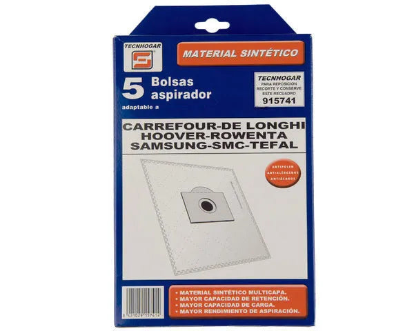 Worek do odkurzacza syntetyczny. Wielomarka. 5 sztuk. C.O. 915741. CARREFOUR, DELONGHI, HOOVER, SMC, SAMSUNG, TEFAL.