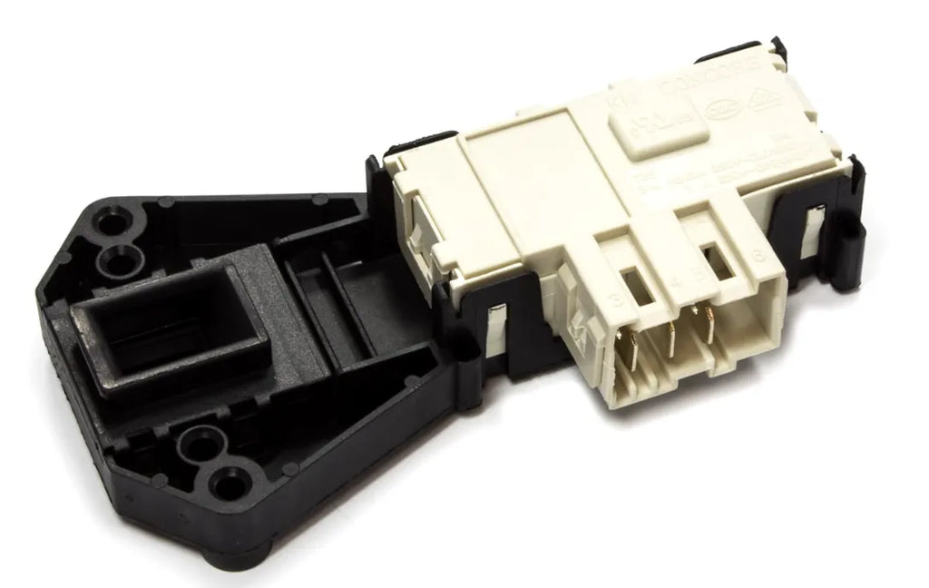 Elektryczne zamknięcie drzwi do pralki Samsung zamiennik. Akcesoria do naprawy pralek. Ten element pełni dwie funkcje: blokuje otwarcie pralki podczas pracy oraz działa jako ogólny przełącznik urządzenia, czyli pralka nie może działać, gdy drzwi są otwarte. Blokada drzwi to jedna z kluczowych części w działaniu pralki.
