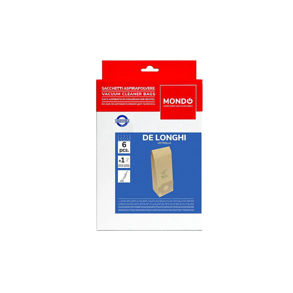 ELECTROLUX, DE LONGHI, VETRELLA – Uniwersalne. Zestaw 6 worków do odkurzacza z mikrofiltrem powietrza. Idealne do utrzymania czystości w domu z najwyższą skutecznością. Kompatybilne z wieloma modelami odkurzaczy marek ELECTROLUX, DE LONGHI, VETRELLA.