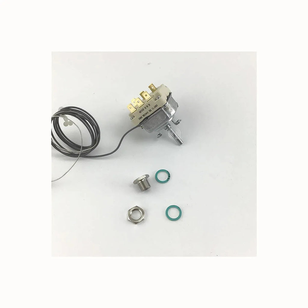 Termostat EGO 55.34035.080, wysokiej jakości zamiennik pasujący do szerokiej gamy piekarników i frytkownic. Wyprodukowany przez EGO, dostępny również jako UNIVERSALE, ten termostat oferuje zakres temperatur od 95°C do 180°C, zapewniając precyzyjną kontrolę dla Państwa urządzeń gospodarstwa domowego. Z sondą o długości 133 mm i kapilarem o długości 1780 mm, jest idealnym rozwiązaniem do utrzymania optymalnej funkcjonalności sprzętu kuchennego.
