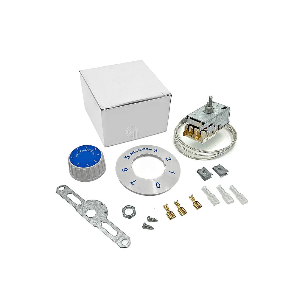 Ten wysokiej jakości termostat uniwersalny jest kompatybilny z szeroką gamą lodówek wiodących marek, takich jak ELECTROLUX, ZANUSSI, AEG i REX. Stanowi ekonomiczną zamiennik dla modeli Ranco K59-L1035 (wcześniej K59-L1265), zaprojektowany, aby przywrócić optymalną temperaturę w Twojej lodówce. Idealny do rozwiązania problemów z nadmiernym lub niewystarczającym chłodzeniem, zapewniając odpowiednie przechowywanie żywności. Jego instalacja jest prosta i oferuje niezawodną oraz trwałą alternatywę dla oryginalnej części zamiennej. Kompatybilny z referencjami 2262143023 i 50087512005 marki ZANUSSI.